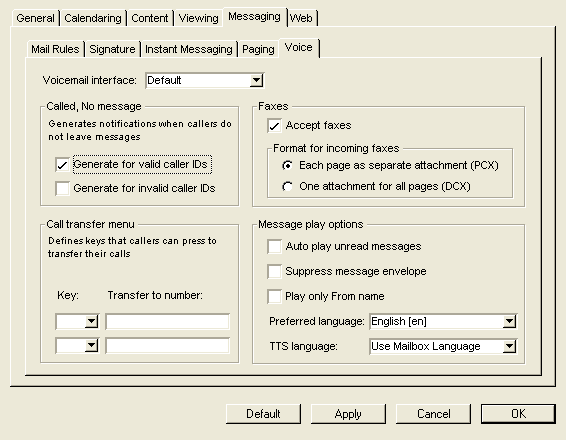 The Voice Preferences web form help explains all the fields on this form.