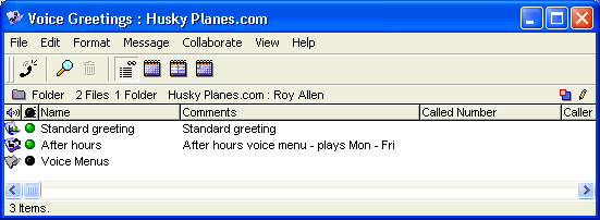 When the voice menu is complete, the Voice Greetings folder will look like this (there may be additional greetings):