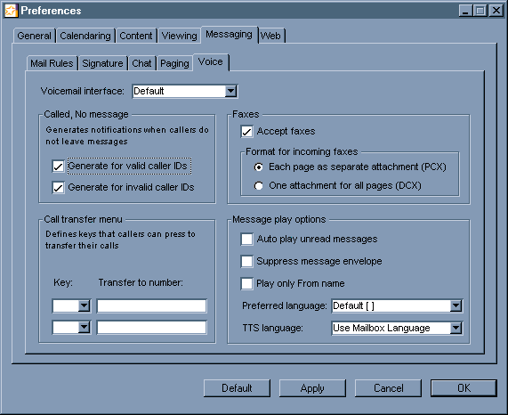 The Voice Preferences web form help explains all the fields on this form.